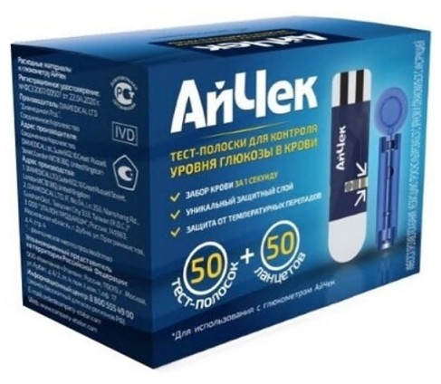 Тест-полоски АйЧек iCheck для глюкометра №50 + ланцеты №50